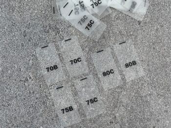 Liemenėlių dydžių etiketės – silikoninės, permatomos – 15x30mm – 100vnt