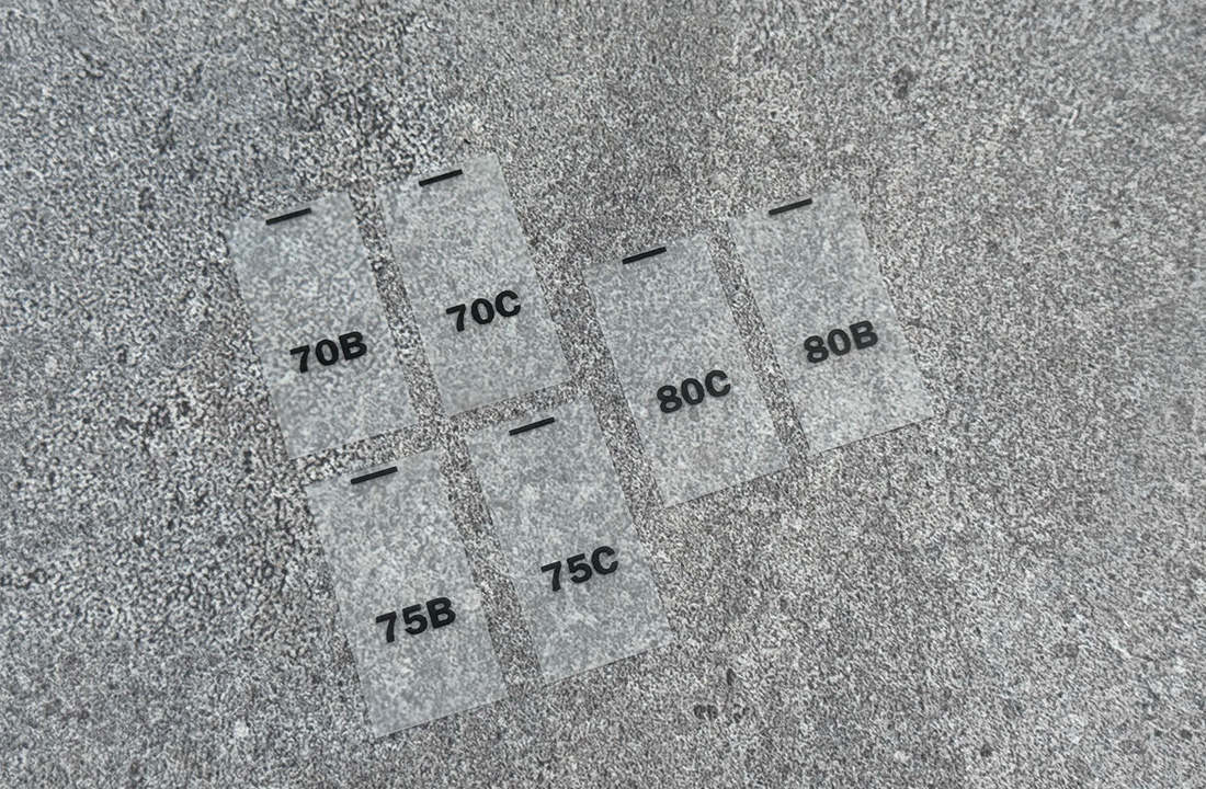 Silikono etiketės 70B, 70C, 75B, 75C, 80B, 80C dydžių etiketės, 10x35mm dydžio.